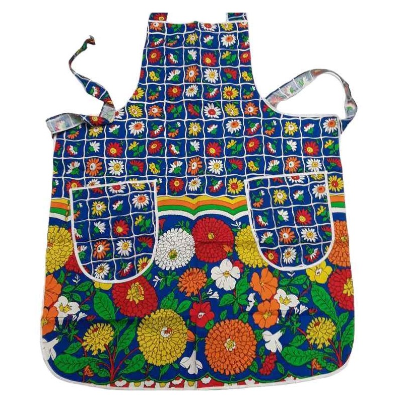 Grembiule da cucina con pettorina e 2 tasche a stampa floreale cotone