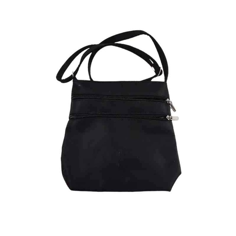 Borsetta tracolla in stoffa nera con doppia tasca con cerniere